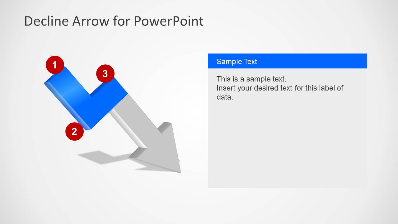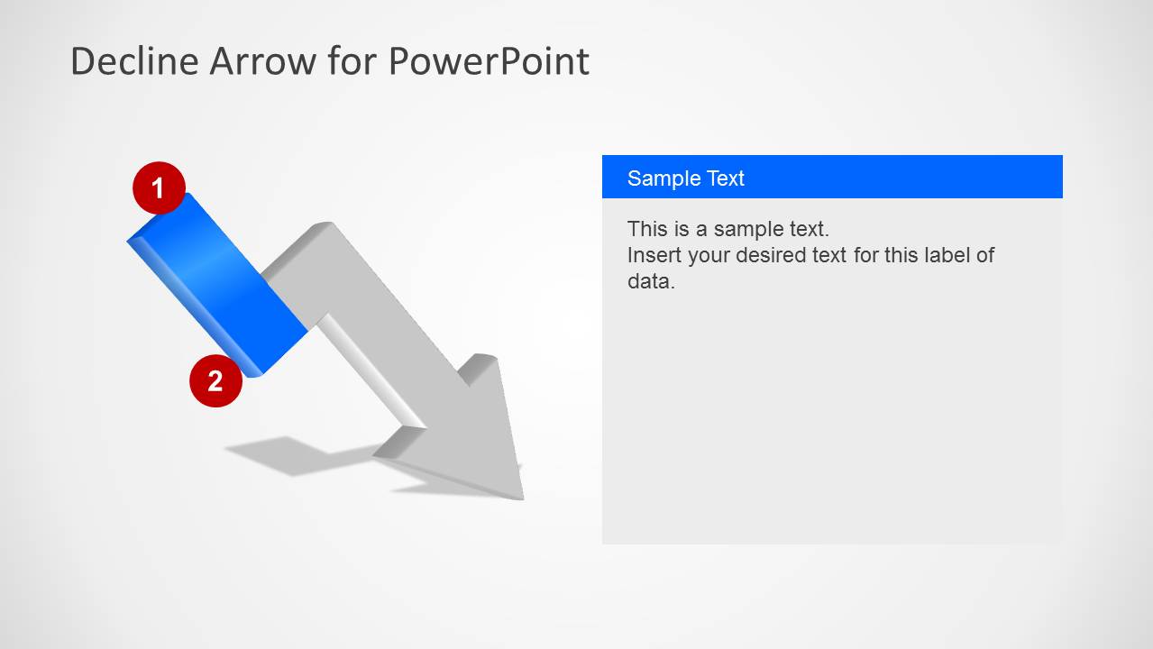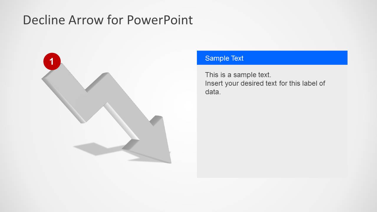 PowerPoint的拒绝箭头是一个简单的PowerPoint模板,包含带有字幕的拒绝箭头设计。您可以使用这个简单的PowerPoint箭头模板来表示危机或销售下降。如果需要相反方向的箭头设计,可以下载提高PowerPoint的箭头模板