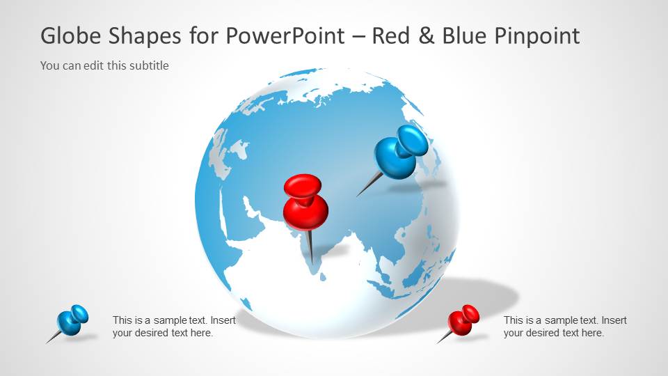 带有地图标记的PowerPoint Globe Shapes是一个很好的演示模板,您可以下载该模板,在幻灯片设计中使用Globe进行演示,并精确定位所需的任何位置或大陆